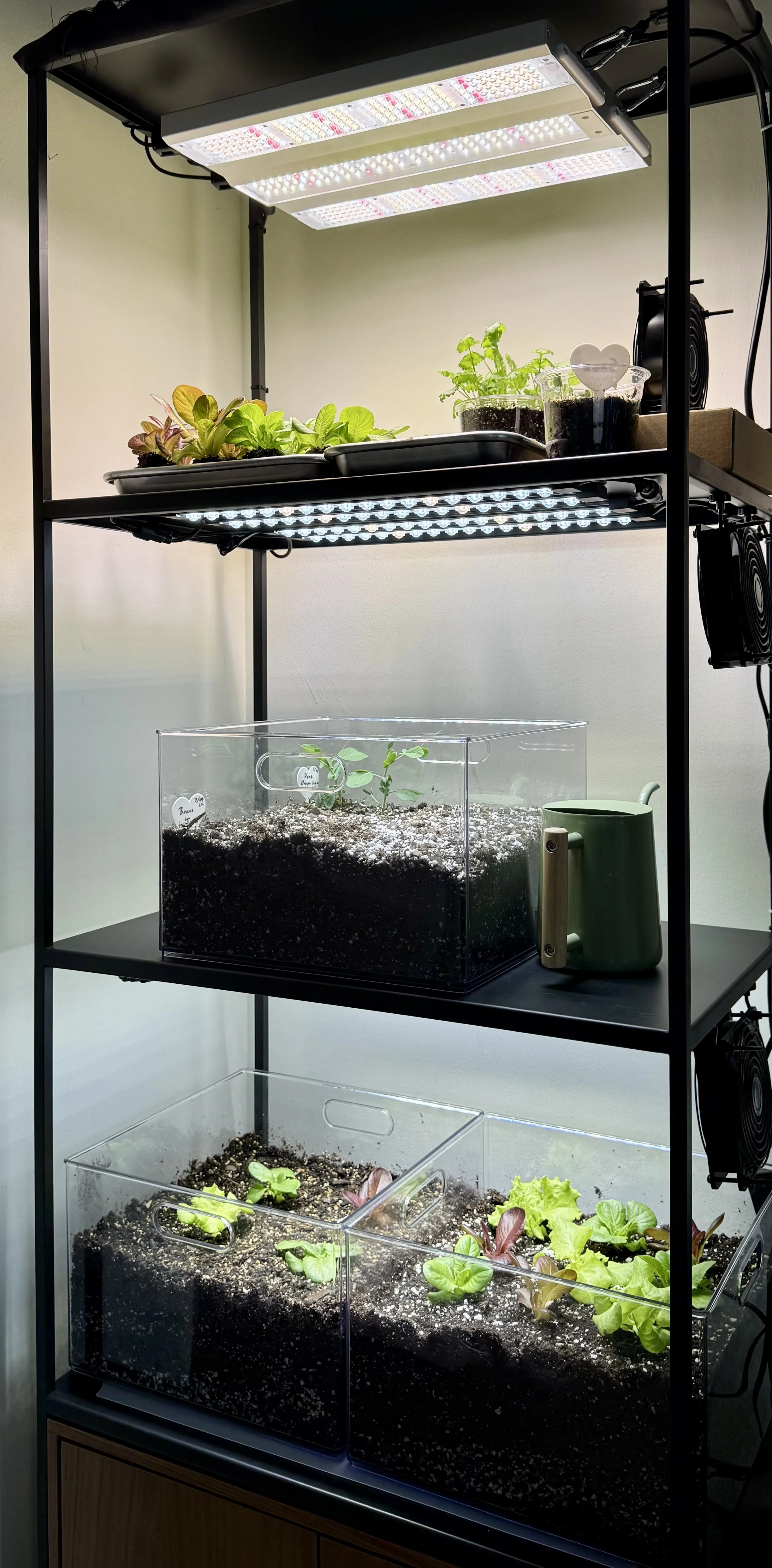 I’d planted the basil seeds in 3/4” cubes of freestanding soil instead of sowing them in cell trays or directly into their final growing medium. It’s a technique known as “soil blocking.” But I’d let these guys grow too tall and they’d started to list. So I went down to my storage locker, opened my giant Rubbermaid bin full of dirt, and started sifting. As one does when they live in a high-rise apartment in midtown Manhattan. I up-potted my basil and this afternoon I’m happy to report that they’re back to standing upright. Thank god. Now I can continue with my day.